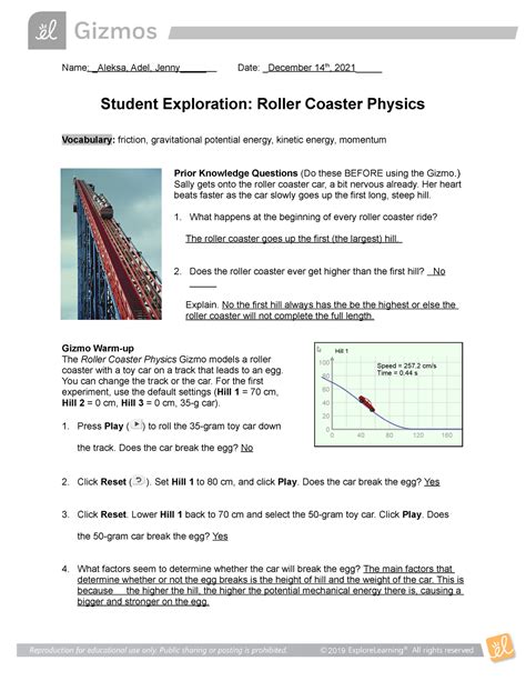 Download Roller Coaster Physics Exploration Sheet Answers Epub